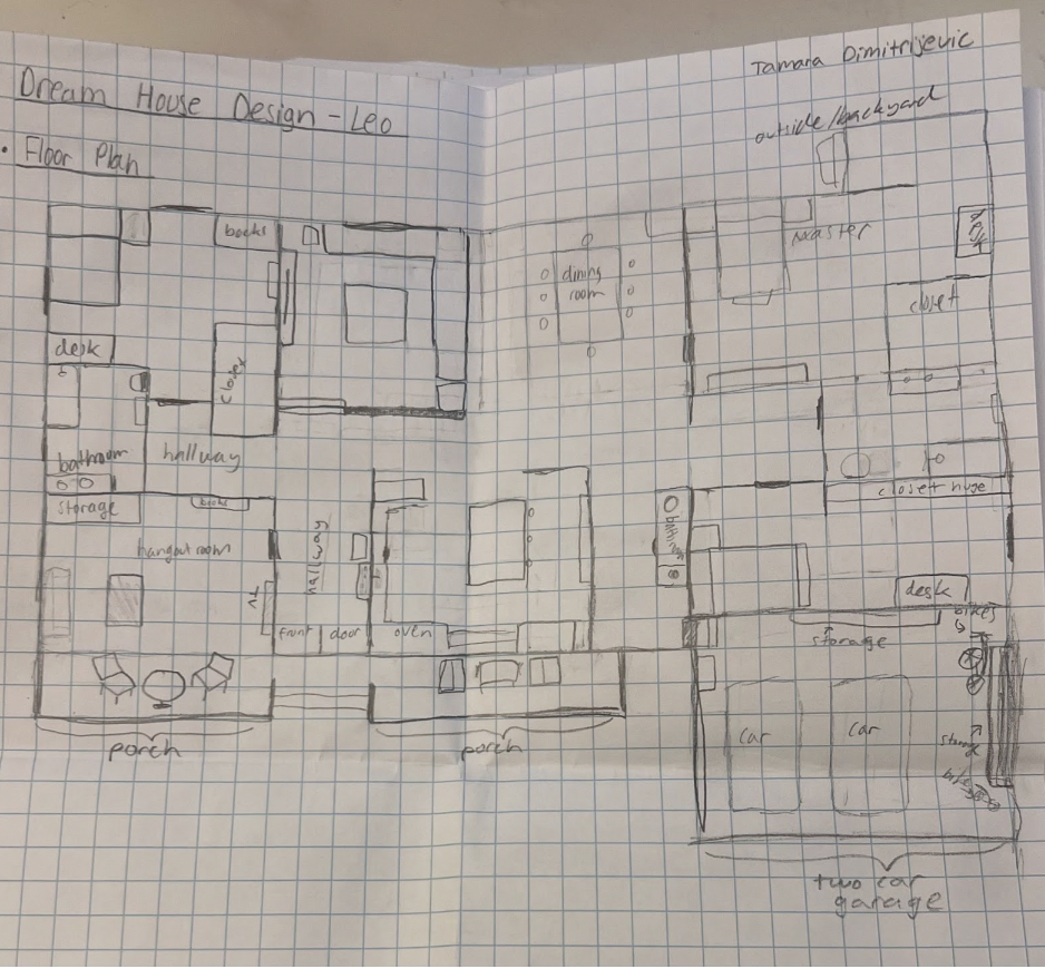 This led me to ask Leo why he thought America was a better place to live compared to France. He explained that America has more suburban areas, unlike France, where many homes are small apartments close together. He prefers open spaces and larger areas rather than compact living. Because of this, he envisions his dream house as a spacious home in the countryside rather than a small city apartment. His love for big spaces and nature strongly influences his ideal living environment.